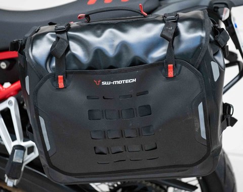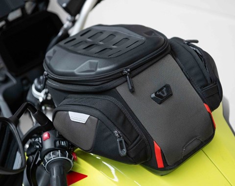 Ausgestattet mit SW-Motech SYS BAG Seitentaschen sowie SW-Motech Tankrucksack.