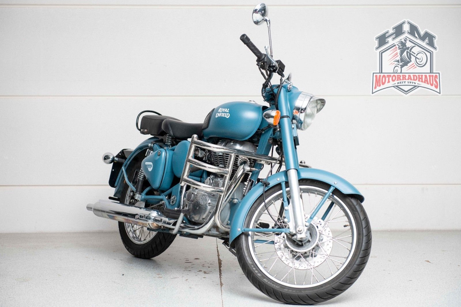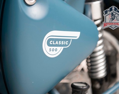 Zum Verkauf steht eine schöne Royal Enfield Bullet 500 Classic in blau.