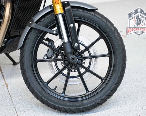 Wer auf eine coole Scramber-Optik steht, bei der Motorisierung aber im A2-tauglichen Bereich bleiben muss, hat mit der Triumph Scrambler 400 X eine richtig fesche Vertreterin zur Auswahl. Der 400er-Motor hat ein schönes Drehmoment im mittleren Bereich, Ausdrehen ist nicht so sein Ding. Die Sitzposition ist aufrecht, das Fahrwerk komfortabel, aber doch stabil. Man kann also auch sportlich mit der Scrambler 400 X fahren, lediglich die vordere Bremse braucht zu viel Handkraft bei beherzter Fahrweise. Dafür ist die Ausstattung mit den vielen geländeorientierten Anbauteilen großzügig und relativiert den höheren Preis gegenüber der nackten Schwester Speed 400.- hochwertige modern-klassische Optik